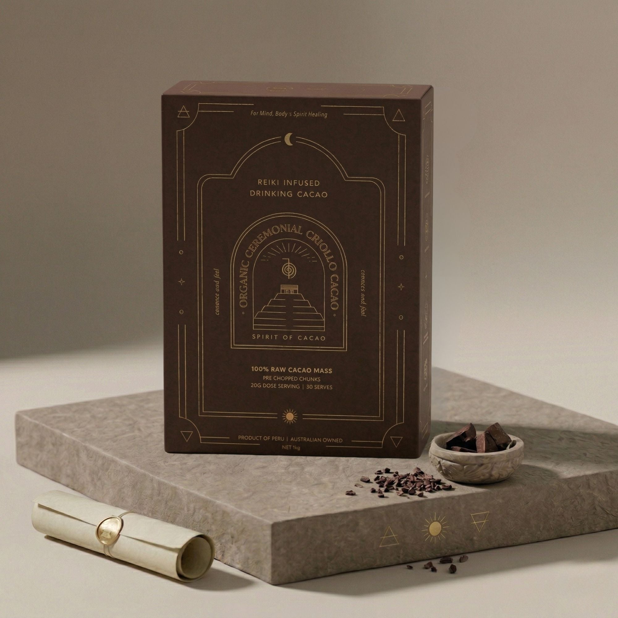 Every batch of our single-origin Peruvian Criollo cacao is infused with Reiki energy and offered with deep care, reverence, and integrity.